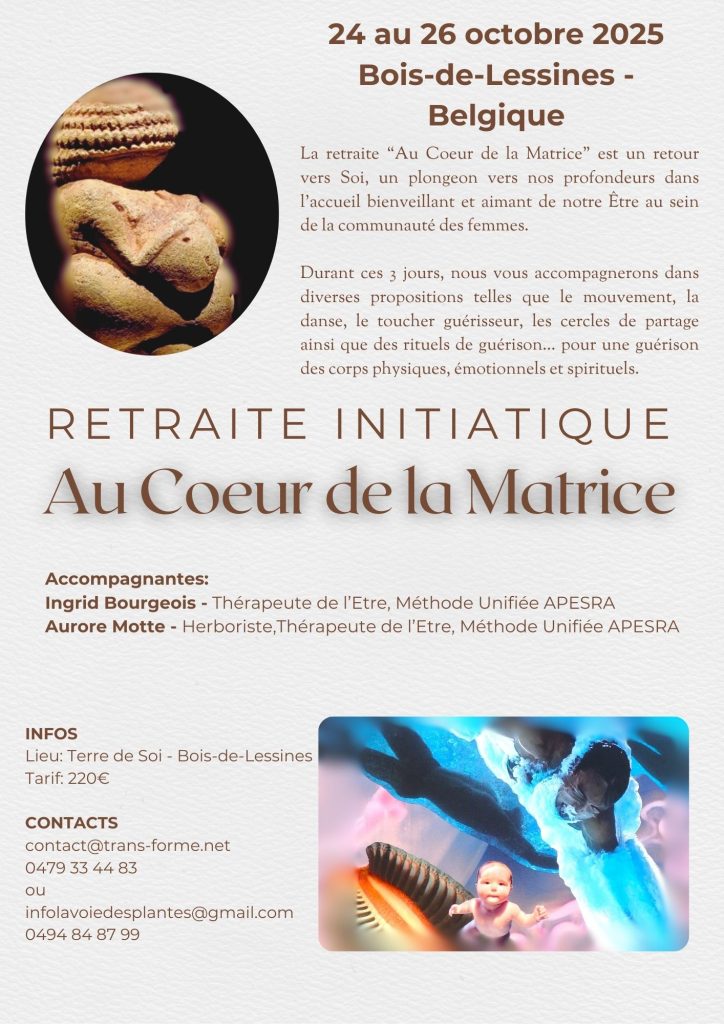 La retraite “Au Coeur de la Matrice” est un retour vers Soi, un plongeon vers nos profondeurs dans l’accueil bienveillant et aimant de notre Être au sein de la communauté des femmes.